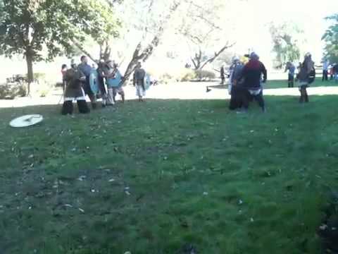 Idag var det vikingadag i centrum och det kom ett vikingaskepp från Birka och försökte invadera stranden. Det blev en vild strid och en del barn blev till och med rädda men alla stod upp efteråt.